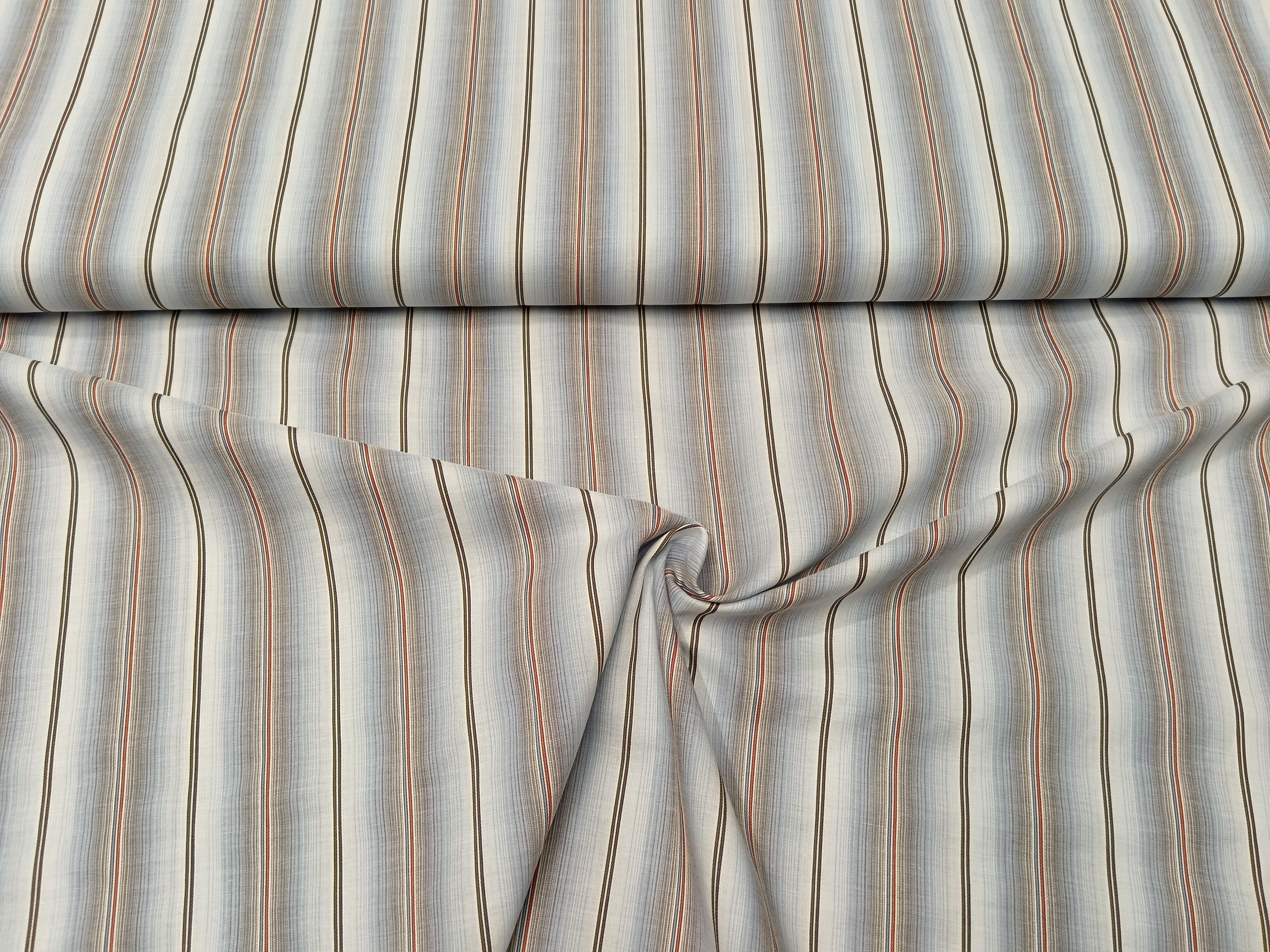 Elegant und leicht, dieser fein gekämmte Hemdenstoff aus Baumwoll Voile ist perfekt für leichte Sommerhemden oder Blusen, Hemdblusen. Mit feinen Streifen und grau-blau verlaufender Färbung. Exclusives Hemdendesign.