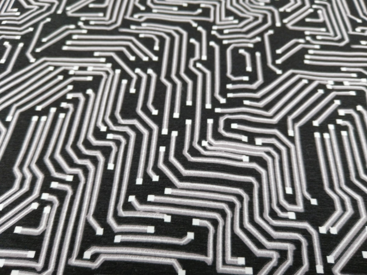 Coole Linien im Circuit Board  Design - nicht nur für Technik Freaks. Perfekt für Shirts, Mützen, Schals, Hosen und leichte Pullis. Auch für kuschelige Kissen sehr schön. In schwarz weiß.