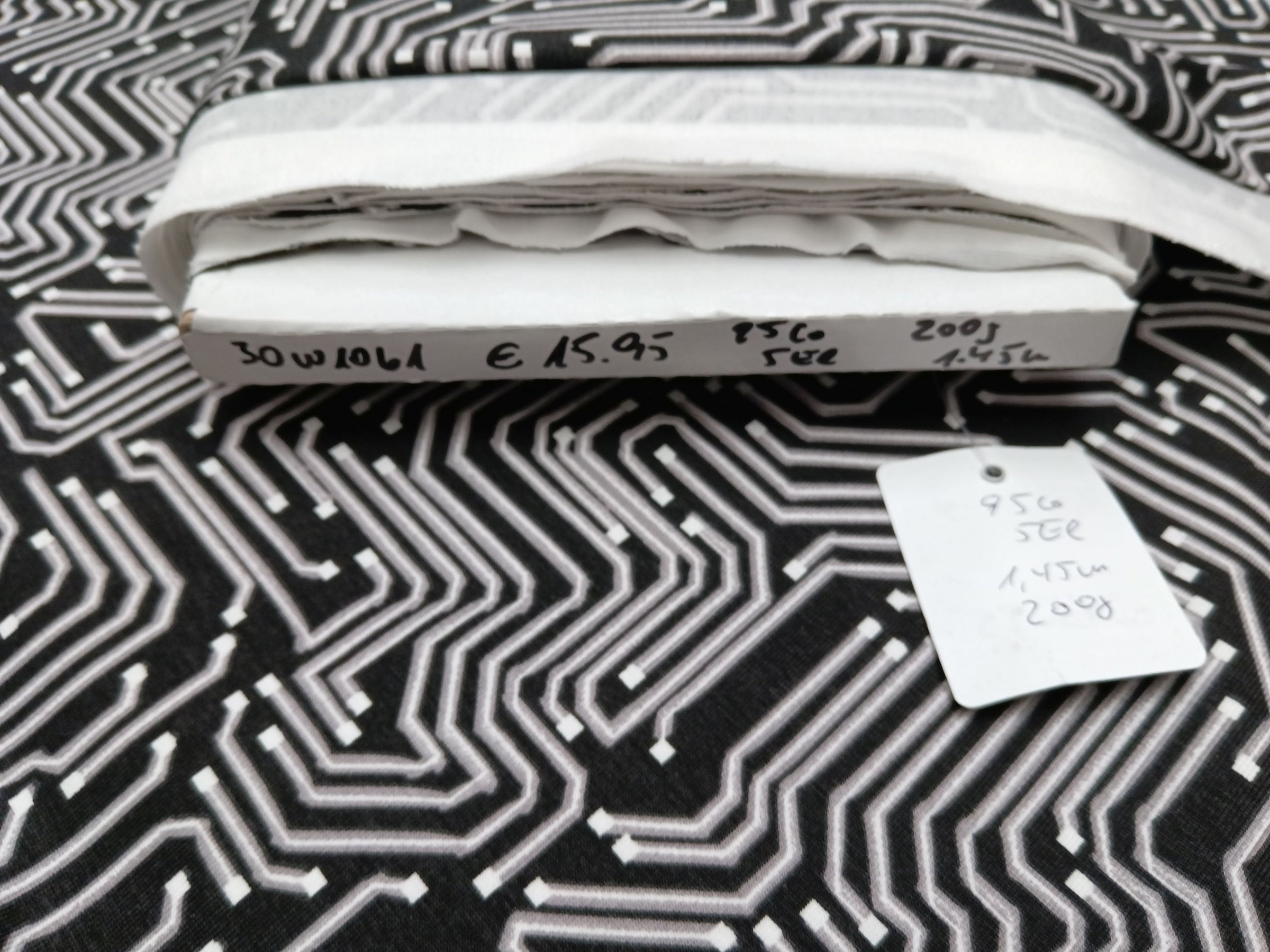 Besonderer Baumwolljersey mit grafischen Linien im Leiterplatten Design in schwarz weiß