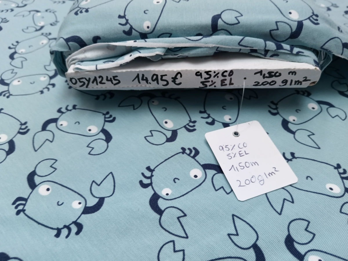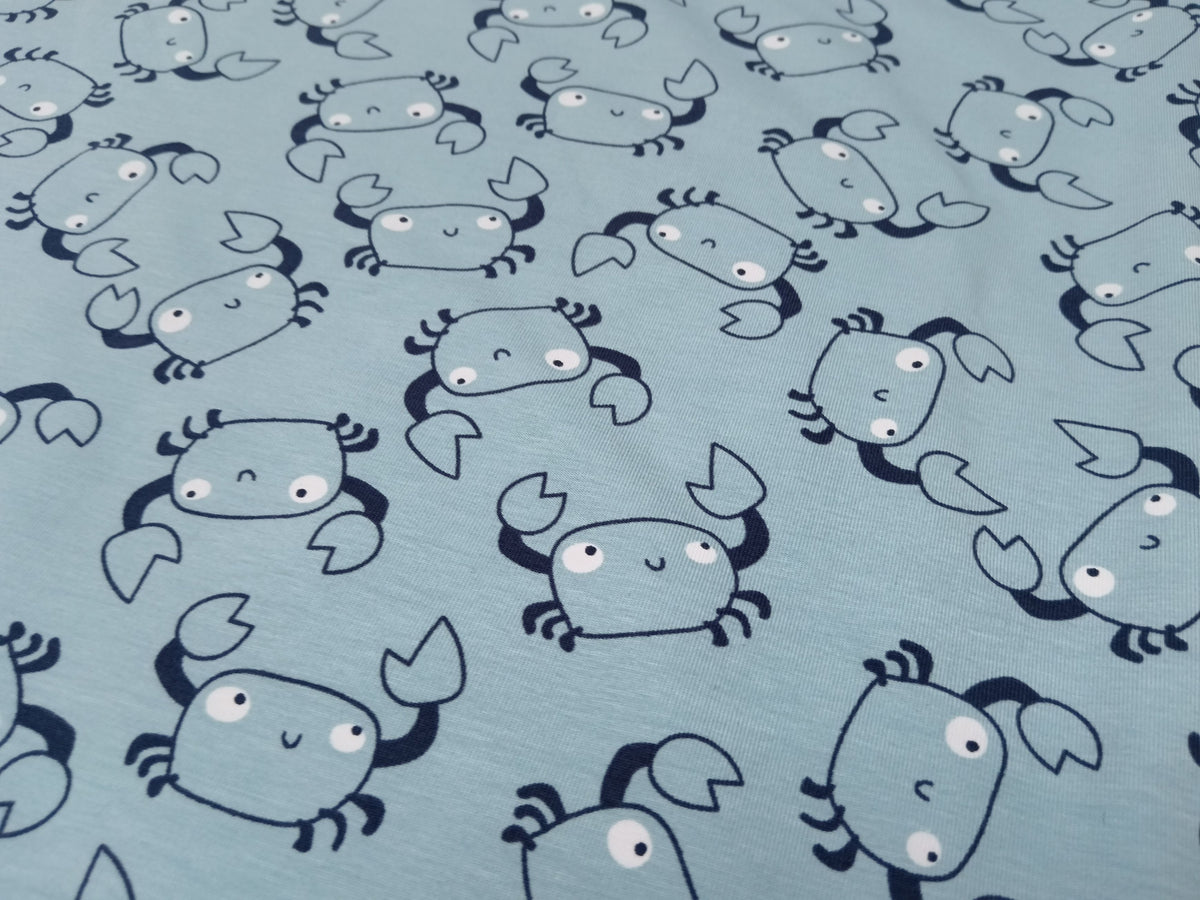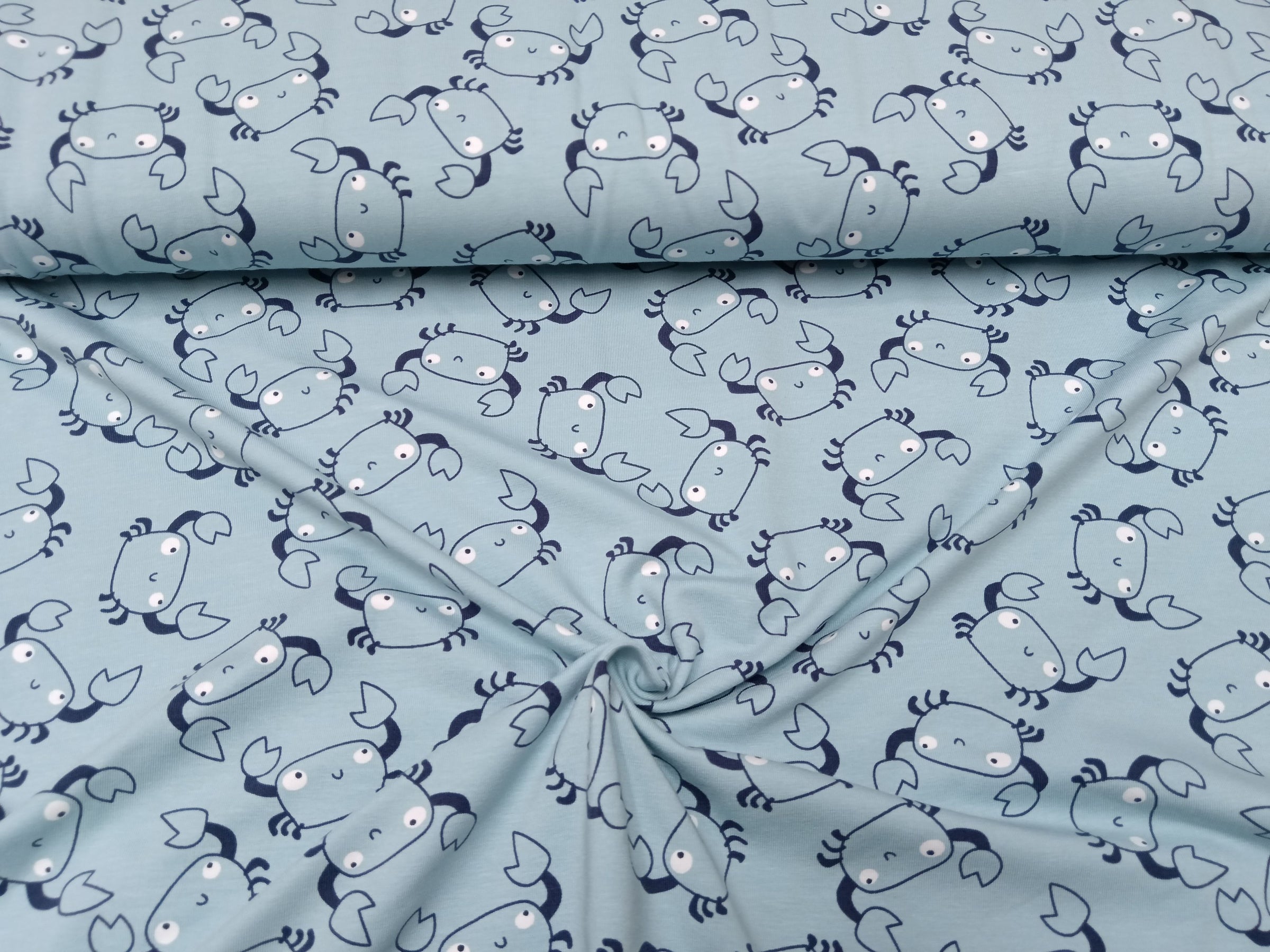 Lustiger Baumwoll Jersey in hellblau mit niedlichen Krebsen
